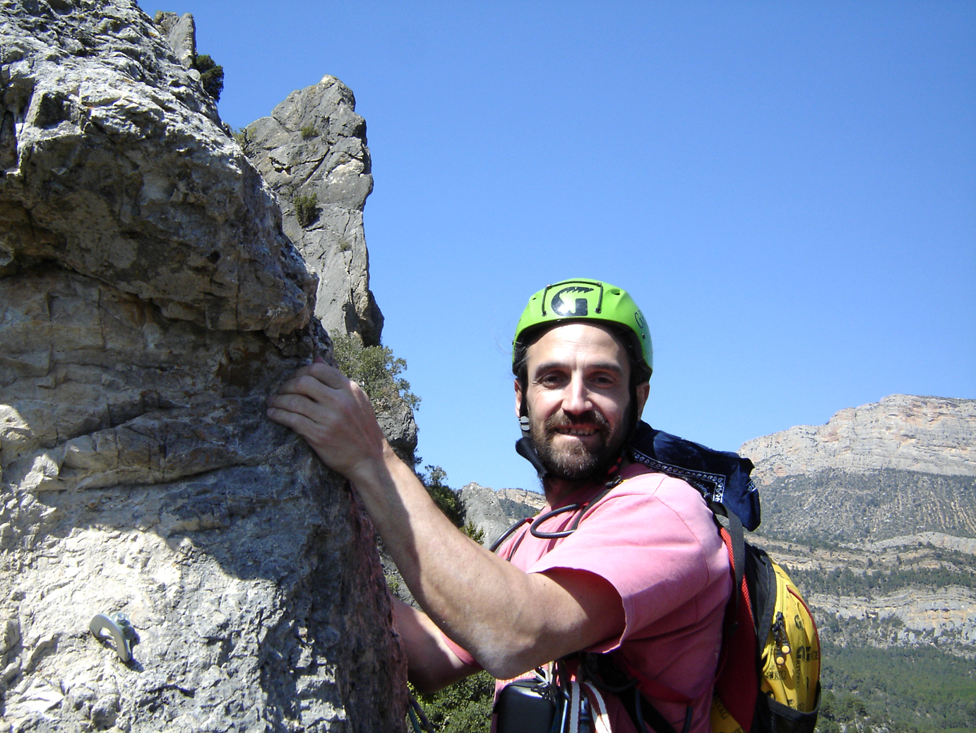 Nunca antes había estado en este paraíso vertical: ya se sabe que Montrebei es para súperhombres, no para ratones. Pero en realidad en estos dos días que he estado por allí, me he dado cuenta que no es ni de unos ni de otros, sino de ¡¡jabalís!! ¿Nadie les ha enseñado a hacer una sendica como dios manda? ¡Qué aproximaciones! El sábado estuvimos en la cresta Urquiza-Olmo y el domingo en la vía Santiago Domingo de la Pared de Aragón, y la aproximación a ambas fue tal para cual: la primera llena de subiybajas, agujeros rastreros, destrepes por cadenas o a pelo y la segunda llena de matorrales pinchudos e interminables barranqueras que bajar para luego subir. Eso sí, la bajada de la Pared de Aragón es de 5 estrellas, una PR como una autopista, bien marcada, sin destrepes guarros, sin pedreras, sin culinbajas. Todo un lujo dentro del catálogo de bajadas salvajes en las tapias.
